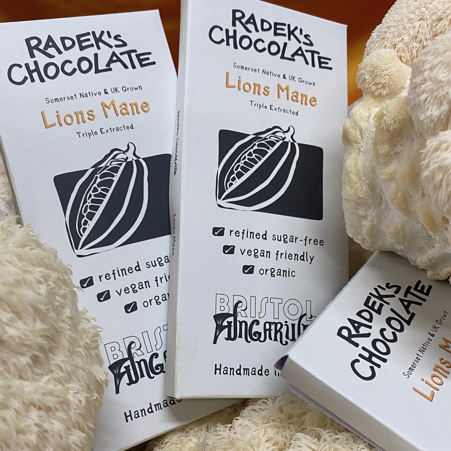 We undertook our first collaboration with the wonderful Radeks Chocolate, adding the most delicious vegan, fair trade and organic Lion's mane chocolate on the market to our growing range. This would be the first of many exciting collaborations with Radek and the team, including our Lion's mane cacao - and more to be released...